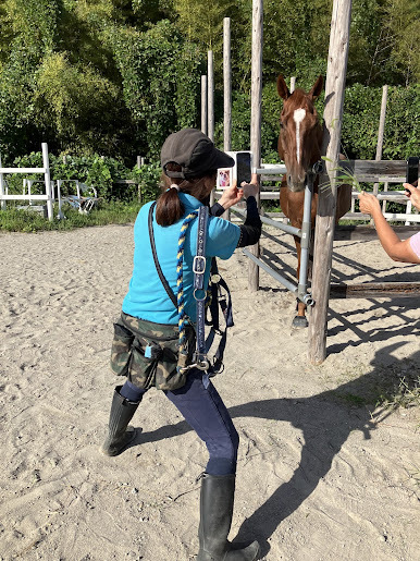 馬たちも、レッスンで掻いた汗を流します(*^_^*)